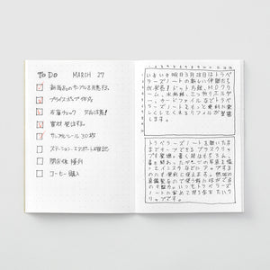 El cuaderno tiene papel MD (Midori Diary) en blanco de color crema, hecho con cuidado en Japón. El papel es resistente al bleeding, resistente a las plumas y apto para plumas estilográficas, lo que brinda al usuario una experiencia de escritura agradable.